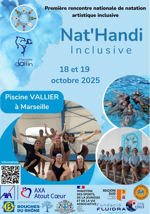 La 1ʳᵉ Rencontre Nationale de Natation Artistique Inclusive aura lieu les 18 et 19 octobre 2025 à la piscine VALLIER de Marseille.